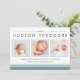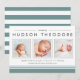 Anuncie a chegada de seu doce bebê com nossos anúncios de nascimento modernos e neutros no estilo de colagem, apresentando três de suas fotos favoritas de recém-nascidos em formato quadrado, acentuadas com os modernos tipos e elementos listrados em preto suave e verde verde-verde-verde-verde-claro. Personalize com o nome do seu bebê, as estatísticas de natalidade e a mensagem da família usando os campos fornecidos.