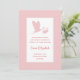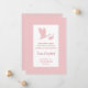 Anúncio de nascimento simples, mas atraente, rosa e branco com uma silhueta de uma cegonha voadora.