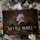 Cartão de nascimento de feriado Whimsical com duas fotos do seu recém-nascido com um texto em uma fonte retrorada que diz "tão feliz" com estrelas ao redor.