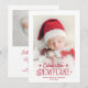 Espalhe as notícias de sua última adição à sua família com este cartão de natal de Natal e de Natal. Personalize facilmente a frente do cartão com o nome e a data de nascimento do seu bebê, e com uma das suas fotos favoritas de recém-nascidos com um lindo roteiro vermelho escuro que lê "Floco de neve mais bonito". No verso do cartão, você pode adicionar uma segunda foto personalizável e informações sobre seu bebê recém-nascido.