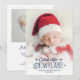 Espalhe as notícias de sua última adição à sua família com este cartão de natal de Natal e de Natal. Personalize facilmente a frente do cartão com o nome e a data de nascimento do seu bebê, e com uma de suas fotos favoritas de recém-nascidos com um lindo roteiro azul escuro que lê "Floco de neve mais bonito". No verso do cartão, você pode adicionar uma segunda foto personalizável e informações sobre seu bebê recém-nascido.