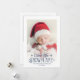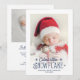 Espalhe as notícias de sua última adição à sua família com este cartão de natal de Natal e de Natal. Personalize facilmente a frente do cartão com o nome e a data de nascimento do seu bebê, e com uma de suas fotos favoritas de recém-nascidos com um lindo roteiro azul escuro que lê "Floco de neve mais bonito". No verso do cartão, você pode adicionar uma segunda foto personalizável e informações sobre seu bebê recém-nascido.