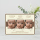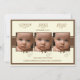 Um anúncio elegante e moderno para seus doces trigêmeos! Gênero neutro em amarelo pálido, há três quadros acentuados com espirais para segurar três fotos de seus bebês - com espaço para o nome de cada criança e detalhes de natalidade.