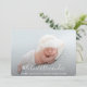 Os anúncios de nascimento elegantemente doces apresentam a sua foto favorita de recém-nascido em hemorragia de cheio, o nome do seu bebê e as estatísticas de natalidade em caracteres brancos. Colagem de fotos e nomes dos pais no verso. *DICA: talvez você queira dimensionar as 2 fotos quadradas na parte traseira ANTES de carregá-las para facilitar o posicionamento.