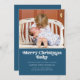Anuncie a chegada do seu novo pequeno enquanto distribui uma pequena alegria de Natal com este anúncio de natalidade de feriado. Ele apresenta as palavras "Feliz Natal Bebê" em branco sobre fundo azul. Tem espaço para uma foto na frente e atrás.