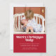 Anuncie a chegada do seu novo pequeno enquanto distribui uma pequena alegria de Natal com este anúncio de natalidade de feriado. Ele apresenta as palavras "Feliz Natal Bebê" em branco sobre fundo vermelho. Tem espaço para uma foto na frente e atrás.