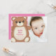 Anuncie o novo bebê com este anúncio de nascimento do ursinho de pelúcia com uma foto. O rosa macio é perfeito para uma menina no caminho!