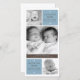 Apresente seus pequenos ao mundo com este belo anúncio de nascimento moderno para gêmeos, em katkadoodle.com. Fundo azul suave de denim, tipografia contemporânea em marrom-mocha com um estilo simples que apresenta três fotos retratos de seus queridos garotos. Também disponível para meninas gêmeas.