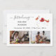 Novo cartão de anúncio simples, elegante e bonito com três fotos, os textos "Apresentando" + o nome do recém-nascido + suas estatísticas de nascimento + "Bem-vindo com amor" + os nomes dos pais. Certifique-se de personalizar todas as informações. Este cartão inclui uma ilustração com um unicórnio ajoso com ouro e brilho vermelho em seu homem e cauda e um bebê preto/de pele escura e fofo em um berço vermelho. Para vários tons de pele do bebê no bassinet no desenho de unicórnio, por favor veja esta coleção: https://www.zazzle.com/collections/new_baby_birth_announcements-119644425584602730