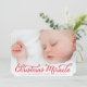 Um cartão com fotos de Natal com um sentimento comovente - "Milagre de Natal". Este cartão de feriado duplica como anúncio de nascimento!