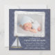 Anuncie o nascimento do seu filho em estilo com este moderno anúncio de nascimento de um bebê náutico azul. Apresentando um padrão de estrela azul e gráfico de veleiro rústico. Personalize facilmente as suas informações! A FOTO DA AMOSTRA NÃO ESTÁ INCLUÍDA. SUBSTITUA POR SUA PRÓPRIA FOTO ANTES DE ENCOMENDAR.