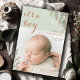 Uma fotografia de um bebê adorável, adorável e adormecido em uma faixa de dois tons e um anúncio de nascimento de cacau leve; esportivo de uma tipografia fofa e folhas de boho-terra. Basta substituir a foto de exemplo carregando sua própria foto no modelo.
