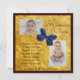 Um fundo de ouro, enquadrado pela cor de Mahogany, e um design azul marinho, tridimensional, arco, fazem disto um rapaz elegante, anúncio de nascimento. Duas imagens fotográficas que permitem mostrar seu filho precioso, e fácil de personalizar texto, fazem disso uma escolha excelente para uma mensagem tão importante.