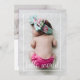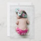 Apresente o seu novo bebê aos amigos e à família com este anúncio de nascimento de duas fotos. "Olá mundo" na frente com espaço personalizável para texto no verso. Branco com sotaques roxos.