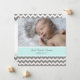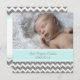 Novo bebê bebezinho anunciando cartões com fotos personalizados em azul-turquesa azul-turquesa, cinza e diversão branca e padrão moderno de zigzags-chevron, totalmente personalizável com a foto do seu bebê e os detalhes do nascimento, uma forma excelente de compartilhar a feliz notícia do nascimento do seu filho com amigos e familiares.