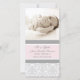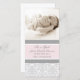 Nova menina bebê anunciando cartões com fotos personalizadas em adoráveis e elegantes pastel branco rosa-claro, cinzas e cor damasco floral clássica branca, totalmente personalizável com a foto de seu bebê e os detalhes de natalidade, uma maneira excelente de compartilhar a feliz notícia do nascimento de sua filha com amigos e familiares.