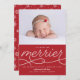 Compartilhe notícias do nascimento do seu recém-nascido com este cartão de feriado do "Primeiro Natal" dobrando como anúncio de nascimento. Apresenta a frase "Quanto mais o Merrier"