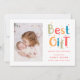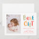 Celebre a sua mais nova bênção com este cartão de Natal moderno e divertido para anunciar o nascimento. Com um design colorido de “Melhor Presente” e espaço para a foto do seu bebé, captura perfeitamente a alegria da chegada de um bebé no Natal. Ideal para partilhar o nome do seu recém-nascido, detalhes do nascimento e primeira saudação de Natal com os entes queridos. Adicione o seu texto personalizado para um mimo cheio de calor e alegria. Personalize o seu hoje.
