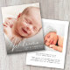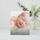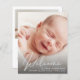 Uma opção econômica para anunciar o parto do seu bebê, apresentando sua foto com "Bem-vindo" escrito em cima em um roteiro branco de na moda. Por baixo, você pode adicionar o nome dele ou dela, data de nascimento e estatísticas de nascimento. No verso, adicione outra foto e mensagem personalizada.