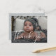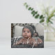 Cartão-postal de anúncio de nascimento do bebê com fotografia moderna. Design com o obrigado que você escreve, foto do solteiro do bebê, estatísticas de natalidade, data e um nome na frente. Personalize com outra foto e seu obrigado, você está no verso.