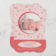 Um doce anúncio de nascimento fotográfico para apresentar o seu pequeno. Flocos de neve deliciosos e uma janela fotográfica redonda em cor rosa e bagas criam o design. (FP)
