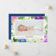 Anúncio de nascimento de fotografias feminina, caprichosa e elegante, com flores púrpuras, azuis e cor-de-água rosa. Este anúncio de nascimento feminino é uma maneira perfeita de compartilhar seu pacote de alegria. Outras cores disponíveis.