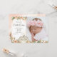 Doce pequena abóbora aquarela anúncio floral de nascimento de bebê. Abóbora branca e flores coloridas de pêssego, belo anúncio de fotos de outono para bebê. Este versátil anúncio de nascimento de um bebê com foto de bebê a cor do cheio, dobra como um cartões de agradecimentos se quiser, com muito espaço aberto no reverso para escrever uma nota pessoal de agradecimento. O texto editável permite-lhe dar as boas-vindas ao bebê como preferir. Essa aquarela inspirou o design floral de abóbora é uma bela maneira de apresentar seu novo bebê.
