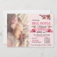 Simplesmente lindo o perfeito Anúncio de bebê para enviar a todos os seus amigos e familiares anunciando o nascimento do seu filho. Apresentando uma foto na frente sobre o fundo da rosa claro, com um design floral cor-de-rosa, um banner cor-de-rosa junto com todas as informações sobre o bebê.