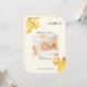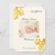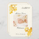 Querida doce e elegante, o anúncio de nascimento do bebê. A design apresenta um belo design de pente de mel abstrato amarelo-aquarela, com abelhas lindas estilizadas de mel incorporadas aos elementos do pente de mel. A foto do bebê é colocada no crio com o nome do bebê e os detalhes do nascimento projetados em um layout limpo e mínimo. No verso do convite para chás de fraldas de abelhas do mel figura o pente de mel desenhado em forma de flor. A inicial do monograma é colocada no centro, com uma abelha de mel fofa. Todas as ilustrações contidas em nosso anúncio de nascimento de bebê de abelha de mel são obras originais desenhadas à mão pela Moodthology.