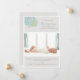 Um anúncio de nascimento elegante e simples com cinzas, detalhes florais azuis e verdes. Muito limpo e minimalista com um modelo de foto retangular onde você pode inserir sua foto de bebê.