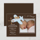 Doce Avião São Gêmeos Anúncio de Nascimento de Gêmeos Menino & Menina apresenta um adorável Avião Azul com bolinhas cor-de-rosa em um fundo marrom moderno. Personalize com a foto dos seus gêmeos recém-nascidos e informações de nascimento e está tudo pronto. Itens combinando disponíveis em nossa loja. ©Cocoa Studio