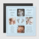 Crie um anúncio de nascimento que seja tão único como o seu filho precioso com este design de 4 fotos "Olá, Pequeno Um" com o nome do seu bebê, estatísticas de natalidade, nomes de pais e irmãos. No centro estão duas linhas de modelo para sua mensagem pessoal ou você pode usar a nossa. Esta mensagem está na parte superior e inferior das pegadas opcionais do seu filho (adicione separadamente à esquerda e à direita). Todas as cores de texto e fundo podem ser modificadas conforme desejado. Mostrado aqui em azul. Design por Holiday Hearts Designs (direitos reservados) com fotos de marcador de posição modelo através de Unsplash.