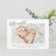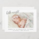 Bem-vindos ao seu novo pequeno anúncio de nascimento com este precioso, "Olá Mundo". É simples, design moderna mostra uma foto da sua menina ou garoto fofo. A design minimalista é perfeita para novos pais. Adicione suas fotos, estatísticas de natalidade e mensagem personalizada!