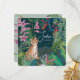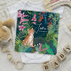 Apresentando o anúncio do pequeno bebê com um lindo tigre na selva tropical com flores, folhas e plantas. Obra de arte original de Caroline Bonne Müller
