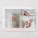 Cartão de nascimento simples com 3 fotos com o nome e a informação do recém-nascido no fundo. Você pode adicionar outra foto e uma mensagem atrás.