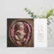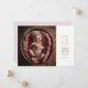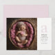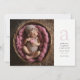 Uma simples introdução para o seu novo bebê com uma única foto, uma grande inicial rosa, espaço para estatísticas e nomes dos pais, juntamente com um verso pontilhado coordenado. Quer uma cor diferente? Clique em "personalizar" para ajustar.