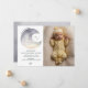 Esta adorável carta de anúncio de nascimento apresenta uma ilustração de aquarela branca de uma lua crescente sorridente e estrelas cintilantes. Ao lado do doce texto escrito "sobre a lua", ele captura perfeitamente a felicidade de receber sua nova chegada. Adequado para um bebê, uma menina, ou um anúncio neutro em termos de gênero. Personalize o cartão com uma foto vertical do retrato do seu bebê e edite facilmente as modelos de texto para um novo cartão de anúncio personalizado para bebês com o máximo de cudez.