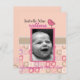 anúncio de nascimento de uma menina fofa. Pêssego doce com um pássaro rosa escuro acentuado com um padrão quarenta. Este produto pode ser completamente personalizado para se tornar um anúncio ou convite para um chá de fraldas, festa de aniversário, chá, graduação, obrigado, nota ou qualquer outra ocasião!