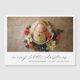 Cartão magnético de anúncio de natalidade moderno de feriado com um simples design com uma fotografia horizontal do seu bebê ou menina recém-nascido, juntamente com "feliz pequeno natal" num roteiro elegante e o nome do bebê e as estatísticas de nascimento abaixo. Este belo anúncio de feriado é a maneira perfeita de anunciar seu novo bebê a todos os seus entes queridos.