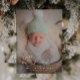 Cartão de nascimento de Natal elegante com tipografia que diz "nosso milagre de Natal" com coração. Este é um cartão de anúncio de nascimento para as férias! Adicione suas fotos, estatísticas de natalidade e uma mensagem! A foto vertical funciona melhor na frente.