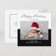Cartão de saudação de fotos "Felizes Feriados" preto e branco moderno e mínimo, que pode dobrar como anúncio de nascimento se quiser. As cores de fundo são personalizáveis com a ferramenta design do Zazzle, para que você possa fazer com que suas cores correspondam à sua foto.