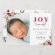 Esta é a estação para ter um bebê! Este anúncio festivo de natal é perfeito para uma menina ou um menino. Adicione a sua pequena foto à frente e ele certamente trará alegria ao receptor. Fácil de personalizar com seus detalhes.