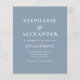 Anúncio de Noivado Azul com Dusty no Texto do Orçamento. NOTA Há duas opções de papel a escolher para este tamanho (4,5 x 5,6") na faixa de Orçamento. Para este produto, eu recomendaria muito o semibrilho, que é um estoque de cartão de 110 gsm, semelhante em espessura a um cartão postal. A opção Satin é um papel muito mais fino, 80gsm. O padrão é definido como semirbrilho. As cores e o tipo da fonte podem ser alterados através do menu de edição. Você também pode alterar as cores de fundo em ambos os lados, se desejar.