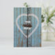 Um velho convite de Festa de noivado de porta de celeiro rústico. A porta como tinta azul esfolada antiga confiava trava de metal. Um coração branco macio forma o centro desta design de casamento. O design tem a noiva e o nome do noivo em letras de pincel. Se você quiser ajuda para personalizar este design, use o botão para solicitar a este designer um botão, imediatamente abaixo deste texto.