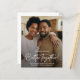 Compartilhe suas boas notícias com este anúncio elegante do noivado fotográfico. A frente apresenta sua foto de casal com a caligrafia moderna anunciando seu noivado. Melhores Juntos é escrito em uma caligrafia manuscrita. Seus nomes estão acima em uma fonte sofisticada de serifa. Duas linhas de texto abaixo permitem personalizar facilmente o lançamento do noivado.