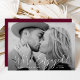 Anuncie sua noivado com estes anúncios elegantes de noivado fotográfico! O anúncio apresenta sua foto horizontal de noivado com sangramento de cheio com "We're Engaged!" em um simples roteiro branco. Personalize a frente do anúncio com seus nomes e detalhes que você gostaria de incluir. O anúncio do noivado de fotos é revertido para exibir um plano de fundo robusto com espaço para fotos e texto adicionais.
