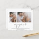 Anúncio de Noivado de Script de Foto Orçamento 2. Um alternativo de 4,5 pol x 5,6 pol com preço inferior. Disponível em um STOCK DE CARTÃO SEMI-GLOSS 110 lb, que é a opção padrão (mais espesso para convites), OU um STOCK de PAPEL THINNER FINISH 80 lb FINISH (ideal para gabinetes). Mínima elegância para anunciar seu noivado. Basta substituir os dois exemplos de fotos por seus próprios favoritos. O noivado está em um script na moda e personaliza facilmente o resto do texto.