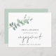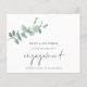 Um valor para o alternativo do ORÇAMENTO em tamanho menor de 4,5 x 5,6" de semirbrilho de 110 lbs, que é de espessura semelhante a um cartão postal (no entanto, não é adequado para uso como cartão postal). POR FAVOR, OBSERVE QUE HÁ UM convite por folha. Anúncio do Noivado Eucalyptus do Script Orçamental. Um design botânico minimalista para que todos saibam as suas notícias entusiasmantes, o Noivado está num roteiro moderno.O resto do texto que você pode personalizar facilmente. As cores do texto e do plano de fundo podem ser alteradas se você desejar por meio da opção personalizar mais.