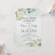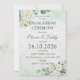 Surpreenda seus convidados com este Anúncio de Noivado Floral Aquarela Verde e Branco com arranjos florais verdes e brancos nos cantos. Basta adicionar os detalhes do seu evento neste modelo fácil de usar para torná-lo único. Veja a loja para itens correspondentes