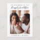 Cartão postal de anúncio de noivado minimalista moderno com sua foto, "O Começo do Nosso Felizes para Sempre" em uma mistura de tipografia simples e um script elegante e seus primeiros nomes na frente. No verso, personalize sua mensagem de anúncio de noivado e adicione nossos nomes em um script semelhante a uma assinatura.